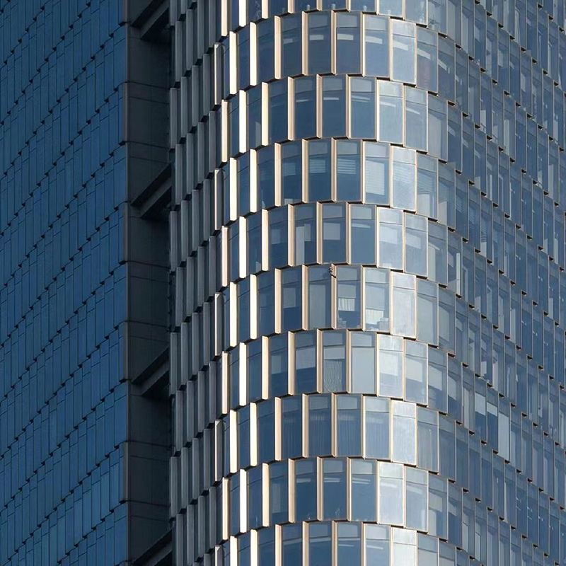 알루미늄 커튼월은 알루미늄 합금 패널을 주요 건축 자재로 사용하여 외부 표면의 클래딩을 형성합니다. 디자인은 건물의 외관, 구조적 강도 및 일부 맞춤화에 현대적인 느낌을 제공하기 위한 것입니다. 고층 건물, 상업용 건물, 문화 건물 등에 널리 사용됩니다. 알루미늄 패널 커튼 월은 알루미늄 합금 패널을 외벽 덮개 재료로 사용하는 건물 외벽 시스템입니다. 이 시스템에는 일반적으로 알루미늄 합금 패널, 지지 구조, 단열층 및 기타 관련 구성 요소가 포함되어 전체 외벽 장식과 단열 및 방음 시스템을 구성합니다. 알루미늄 합금은 가볍고 고강도 소재로 알루미늄 커튼월의 구조적 강도가 좋고 전체 건물 하중을 줄여줍니다.